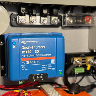 Big stereos need big batteries! The customer had specific needs, loud stereo all day and thats what we gave him. We upgraded the house battery to a massive 400AH of usable lithium, installed a DC-DC charger as well as Simarine Battery monitor so he know knows exactly how many hours he has remaining of pumping the tunes